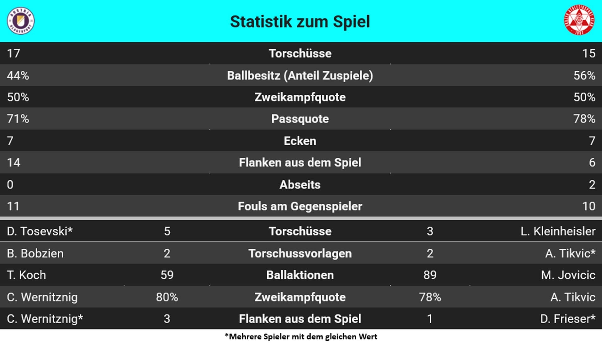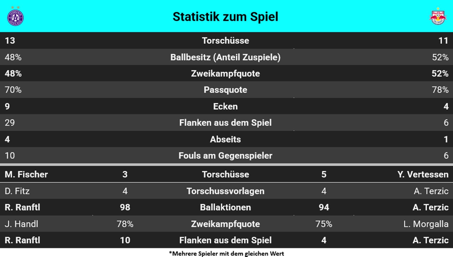 - Aleksa Terzic lieferte erstmals in einem Spiel der ADMIRAL Bundesliga zwei Assists ab und damit gleich viele wie in seinen ersten 34 BL-Spielen zusammen.