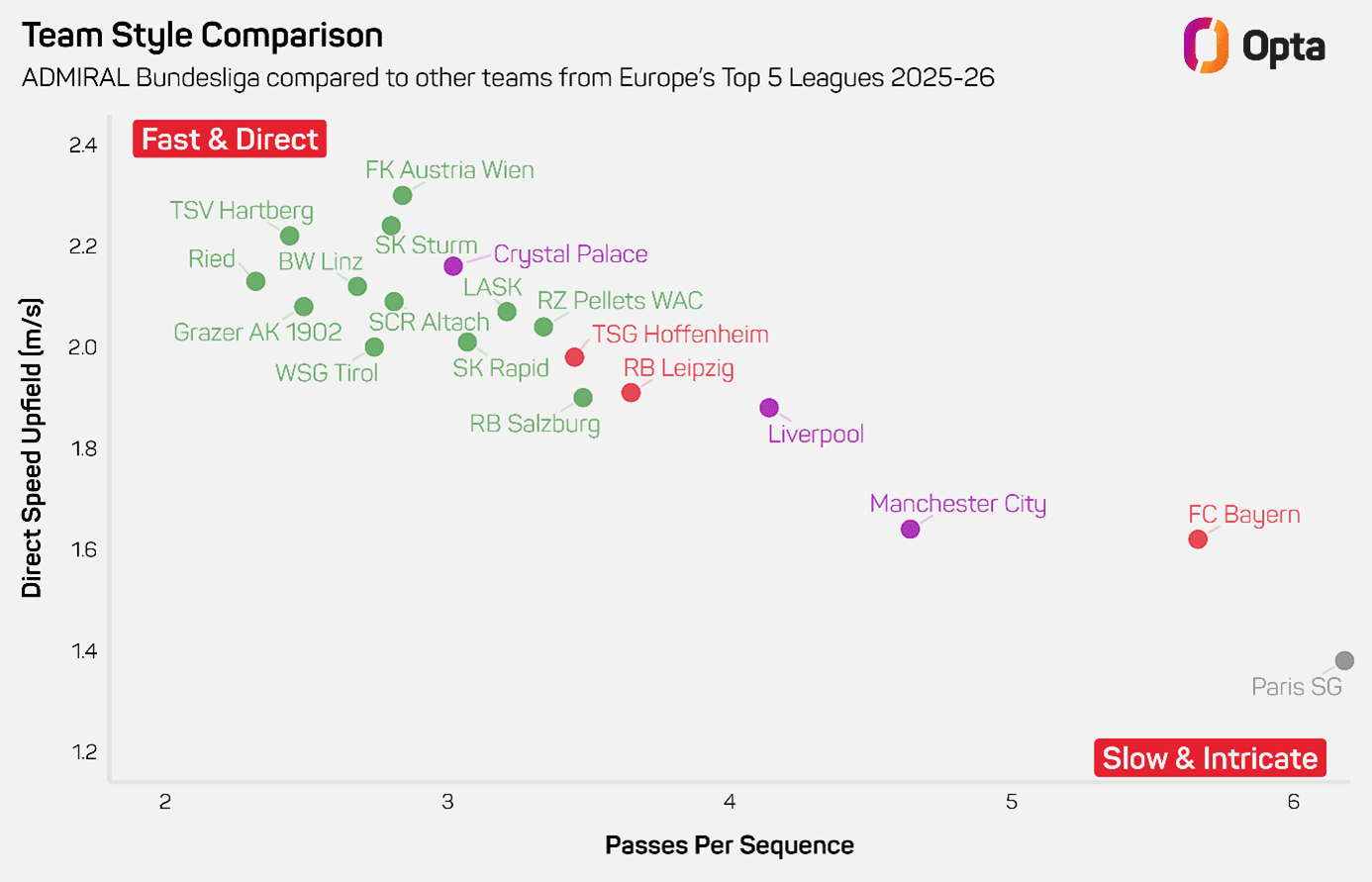Opta-Daten zeigen: In keiner der Top-5-Ligen wird der Ball so schnell und direkt nach vorne gespielt wie in Österreich. Und in der ADMIRAL Bundesliga ist diesbezüglich Austria Wien das Maß der Dinge. Warum das so ist, haben wir mit Admira-Trainer und Sky-Experte Thomas Silberberger besprochen.