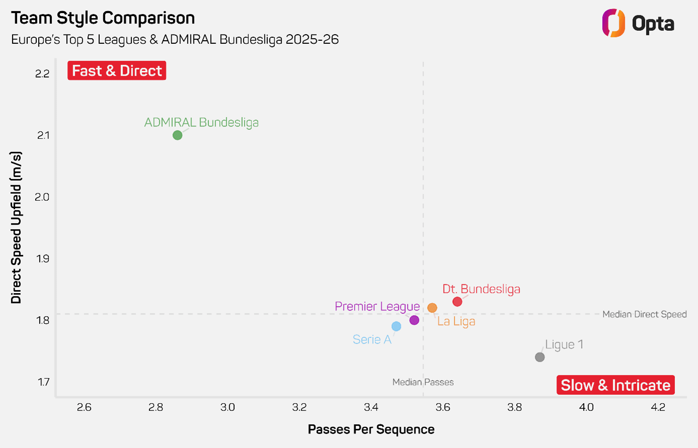 Jedenfalls drängt sich der Verdacht auf, dass keine der Top-5-Ligen mithalten kann, wenn es um schnörkelloses Spiel nach vorne geht. Was diese Grafik eindeutig beweist: