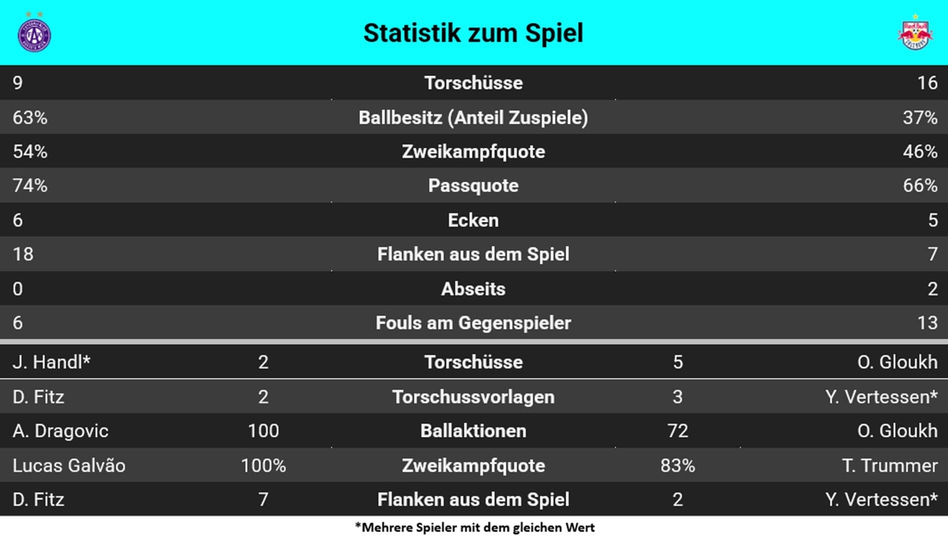 - Raphael Sallinger spielte 29 erfolgreiche lange Pässe – Höchstwert in dieser Runde der ADMIRAL Bundesliga.