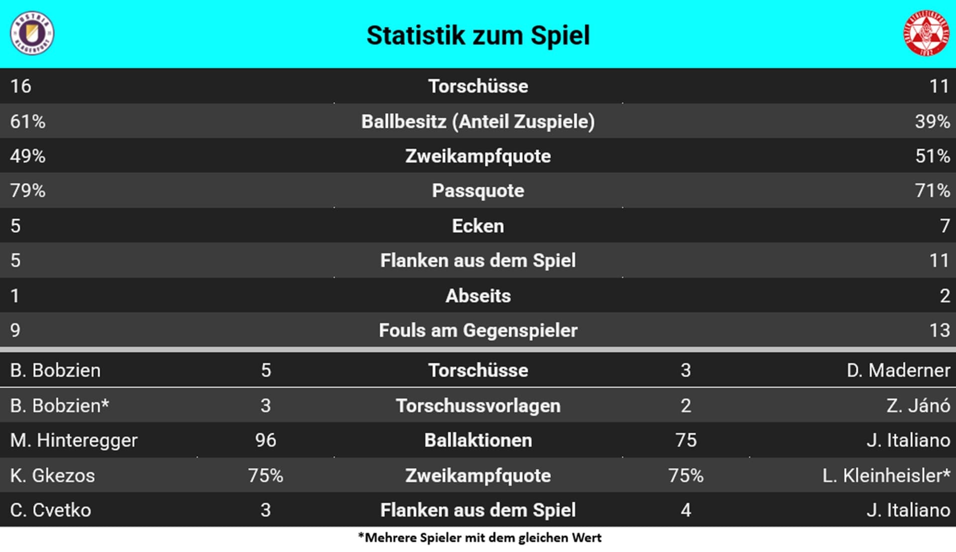 - Nik Prelec gewann sieben Luft-Zweikämpfe – Höchstwert in dieser Runde der ADMIRAL Bundesliga.
