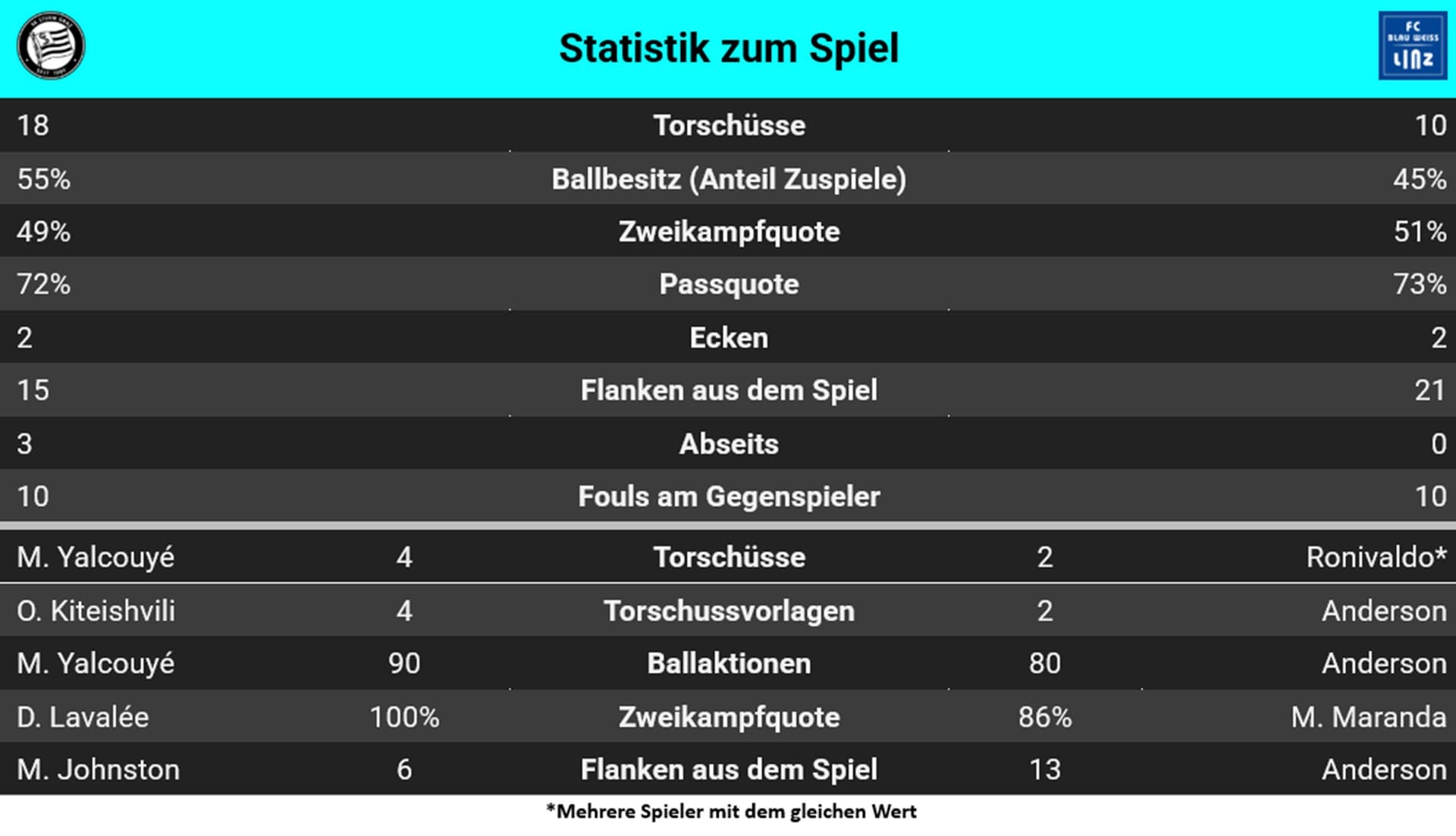 - Otar Kiteishvili erzielte sein siebentes Tor in dieser Saison der ADMIRAL Bundesliga – öfter traf er nur in der Vorsaison (9 Tore). Er traf in beiden Saison-Duellen gegen den FC Blau Weiß Linz.