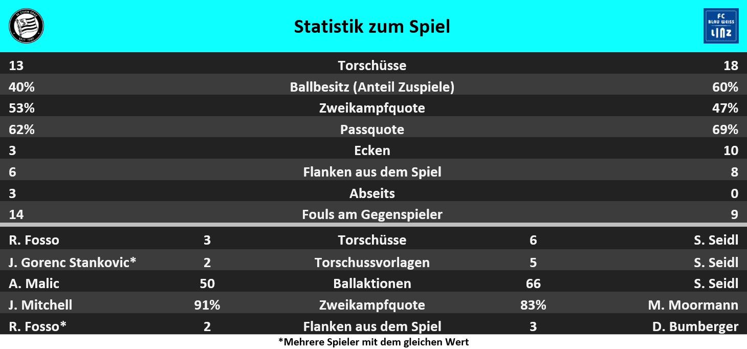- Matthias Seidl erzielte sein zweites Tor in dieser Saison der ADMIRAL Bundesliga – beide nach der Halbzeitpause in einem Heimspiel (zuvor gegen den SK Puntigamer Sturm Graz in der 12. Runde). Seidl erzielte sein 11. BL-Tor - erstmals traf er als Joker.
