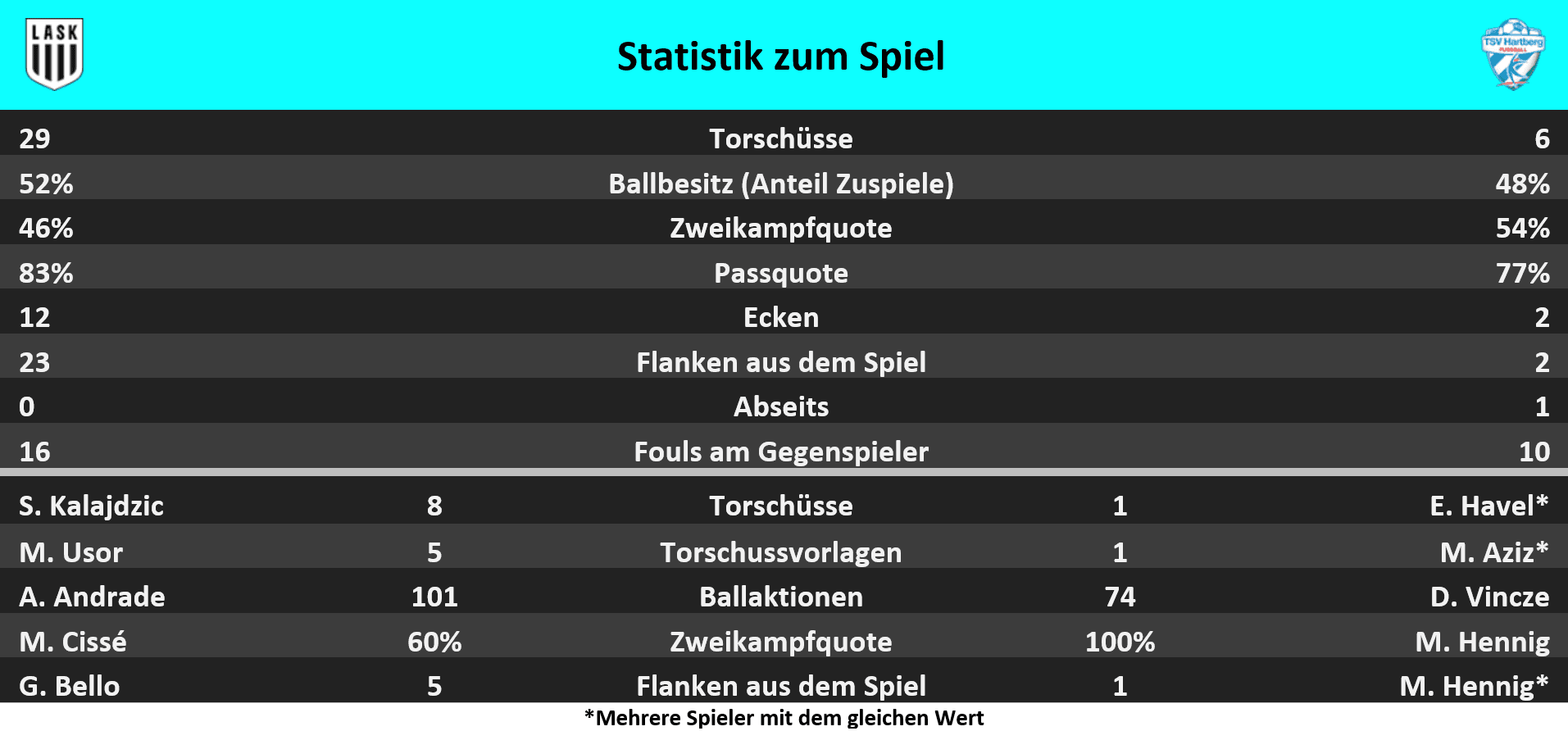 - Andrés Andrade spielte 20 Pässe ins Angriffsdrittel - Höchstwert der 26. Runde der ADMIRAL Bundesliga.