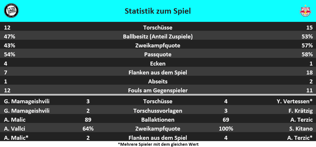 - Der Grazer AK 1902 erzielte erstmals seit April 2005 fünf Tore in einem Spiel der ADMIRAL Bundesliga, damals bei einem 5:1 gegen den SV Mattersburg. Die Grazer trafen in diesem Spiel gleich oft wie in den letzten fünf BL-Spielen zusammen (5).