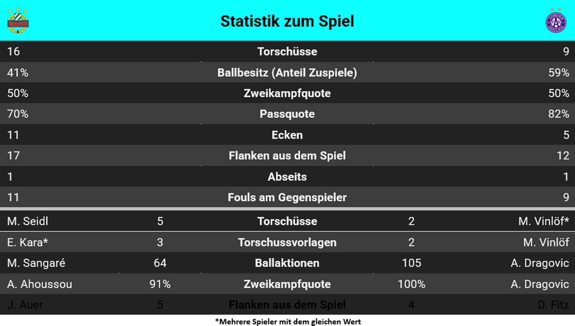 - Mike-Steven Bähre spielte 41 Pässe in der gegnerischen Hälfte – Höchstwert in dieser Runde der ADMIRAL Bundesliga und nur zuletzt beim Heimspiel gegen den LASK mehr in einem BL-Spiel (45).