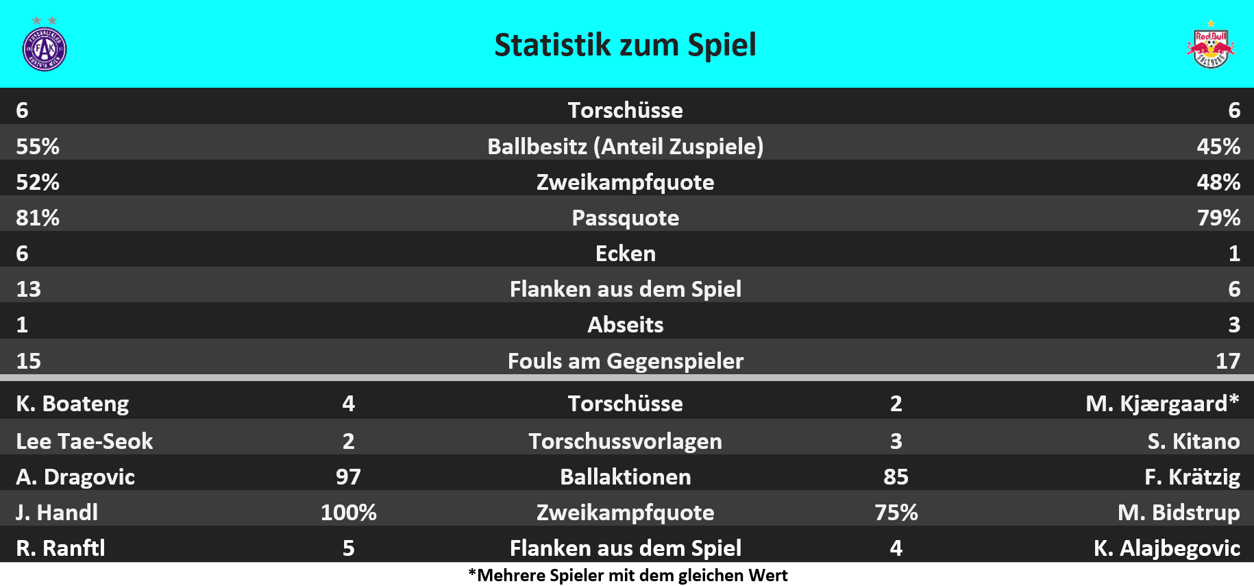 - Kingstone Mutandwa gewann 10 Luft-Zweikämpfe - Höchstwert der 27. Runde der ADMIRAL Bundesliga und sein persönlicher Höchstwert in einem BL-Spiel.