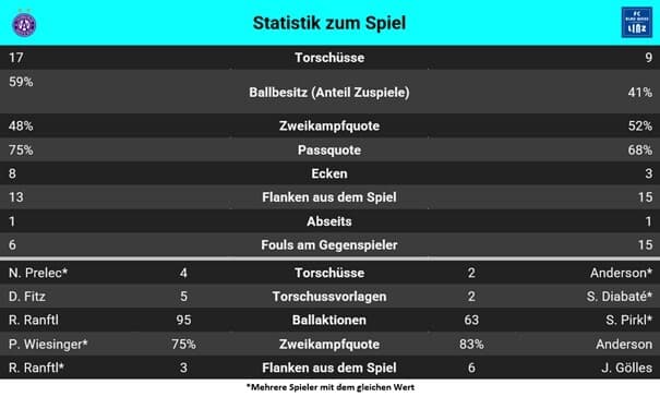 - Thorsten Mahrer hatte 12 klärende Aktionen – Höchstwert an diesem Spieltag der ADMIRAL Bundesliga und persönlich nie mehr in einem BL-Spiel.