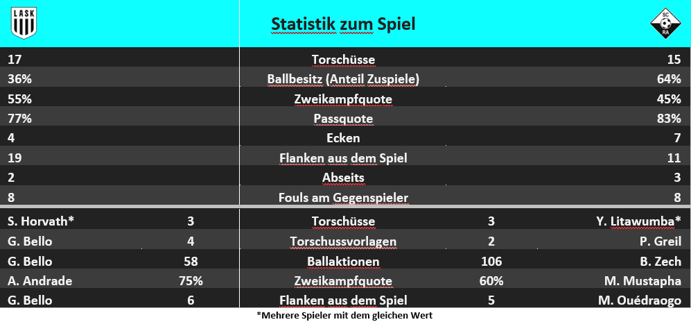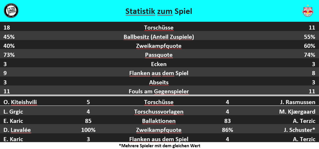 - George Bello bereitete vier Schüsse direkt vor – Höchstwert in diesem Spiel der ADMIRAL Bundesliga und sein persönlicher Bestwert in einem BL-Spiel.